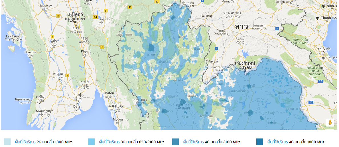 ดู coverage สัญญาณ 3G/4G ของ AIS Dtac Truemove-h