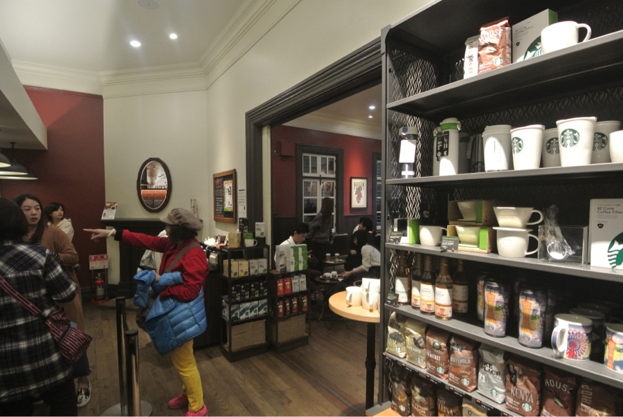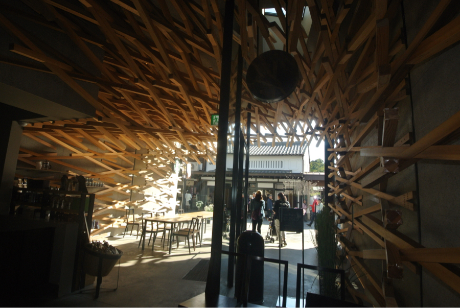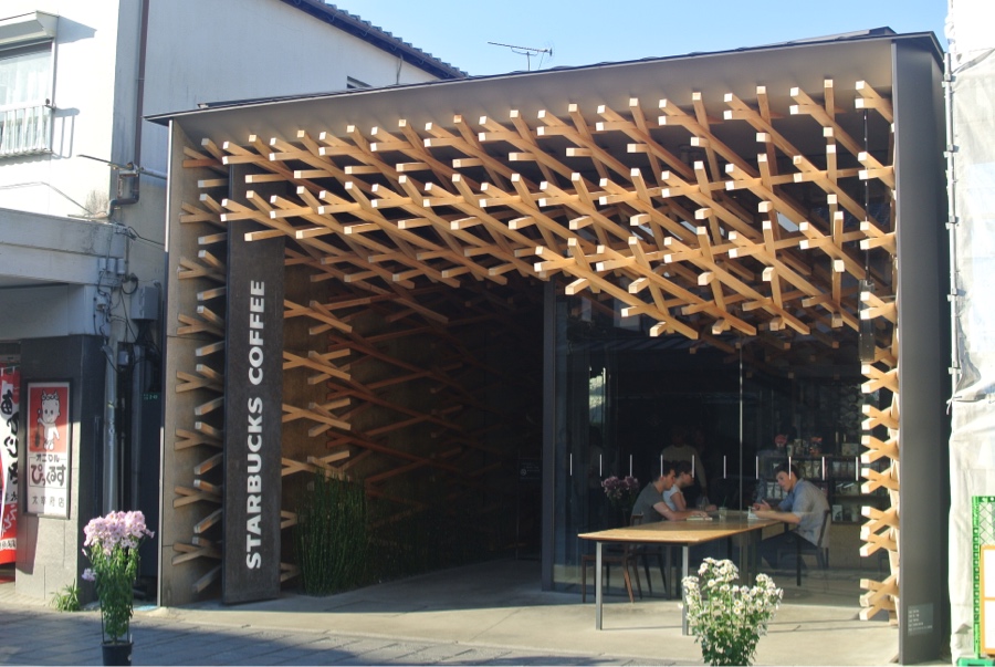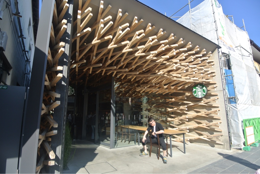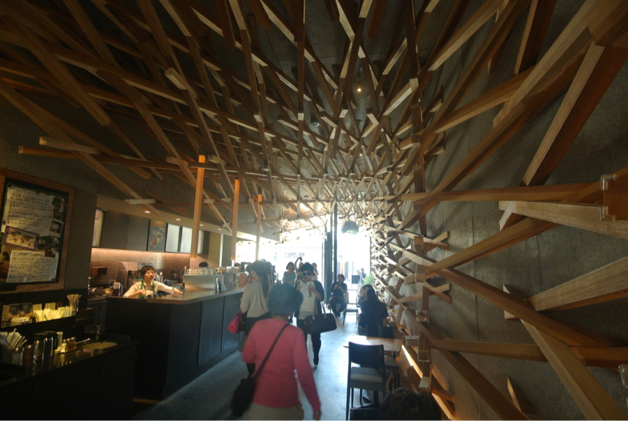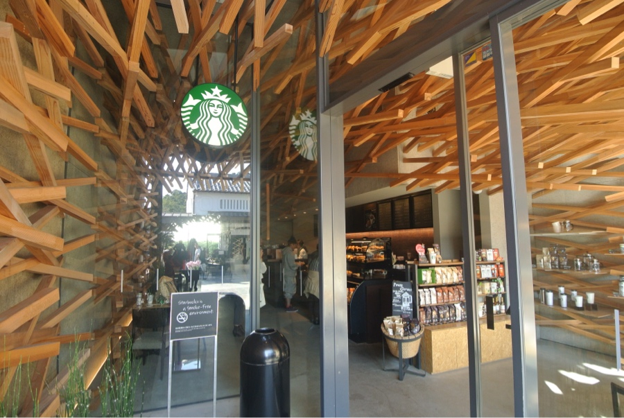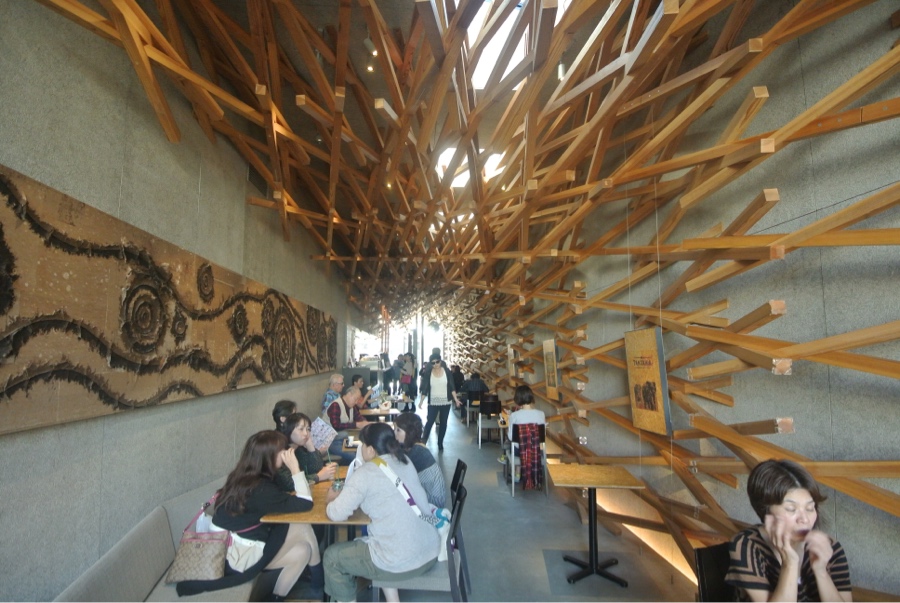 ผลงานของสถาปนิกชื่อดัง Kengo Kuma ใช้ไม้ท่อนกว่า2000ท่อนมาตกแต่งร้าน จนเป็น landmark เป็นสตาร์บัคส์สาขาที่โดดเด่นและขึ้นชื่อมากที่สุดในโลกสาขานึงในเรื่องความสวยงามและแตกต่าง จัดอันดับโพลไหนก็ติดกับเค้าไปทุกโพล