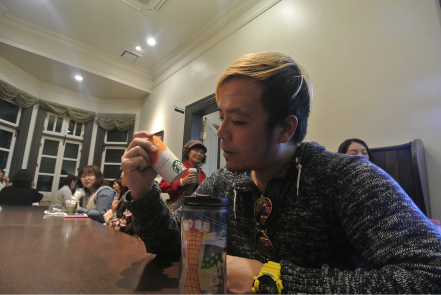 Fukuoka city tumbler กับเครื่องดื่ม Fruit crunch ที่ผมสั่งมาครับ ชิลกันโต๊ะแรกหน้าร้านเลย