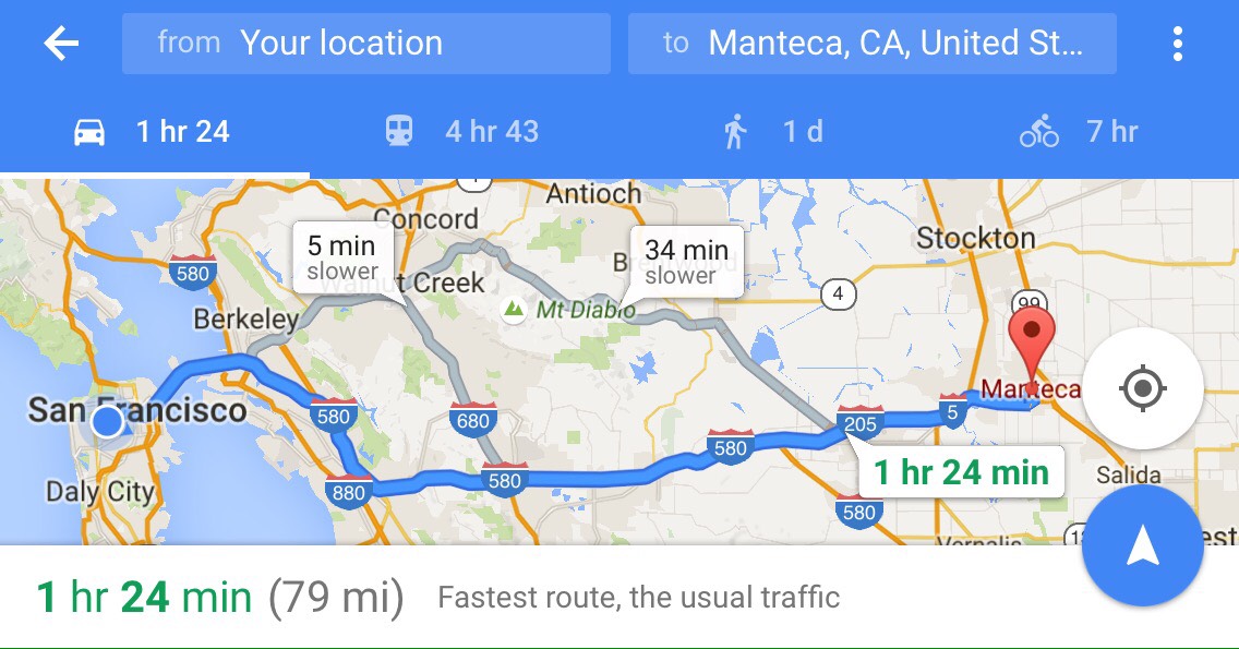 ระหว่างทางเราแวะกินข้าวกลางวันและเติมน้ำมันที่เมือง Manteca เมืองนี้มีปั๊มน้ำมัน ร้านอาหารเยอะครับ และที่สำคัญมี Safeway ให้เราตุนเสบียงก่อนขึ้นเขา