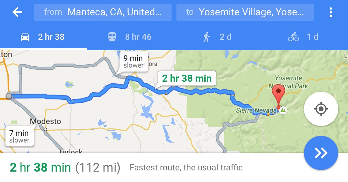 จาก Manteca เรามุ่งหน้ากันไปที่ Yosemite Village กันเลยครับ