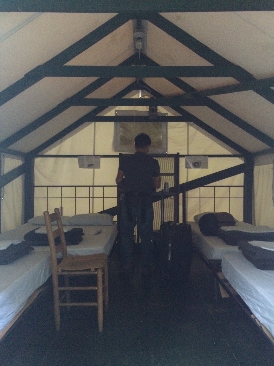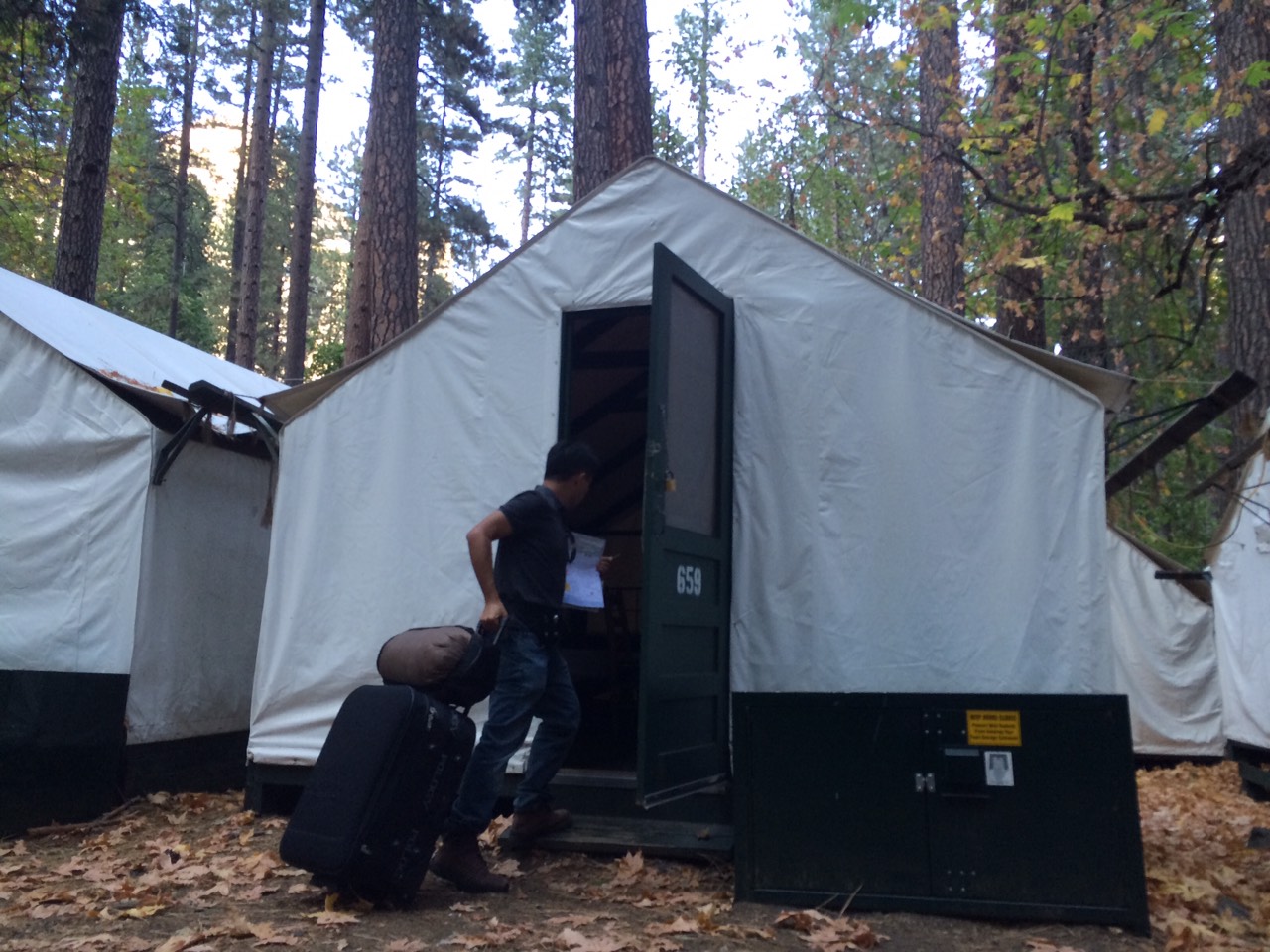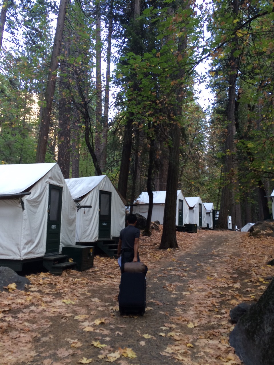 โดยสถานที่ที่เรานอนที่ Yosemite Village ก็คือ แคมป์ปิ้งที่ Curry Vaillage ซึ่งอยู่ใน Yosemite Village เลยครับ ที่พักที่ Curry Village จะเป็น Cabin หรือเต้นท์ถาวรขนาดใหญ่ครับ มีเตียงพร้อมที่นอน หมอน ผ้าห่ม ตู้อยู่ด้านในเต้นท์ มีผ้าเช็ดตัวให้ด้วยครับ เพียงแต่ไม่มีปลั๊กไฟให้เราชาร์ต ค่าที่พัก Cabin ประมาณ $100 ครับ ซึ่งถือว่าถูกแล้วใน Park ผมจองผ่าน www.getaroom.com ครับ ส่วนห้องน้ำเป็นห้องน้ำรวมนะครับ