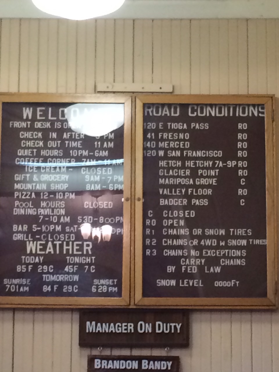 ข้อมูลรายวันของ Yosemite จะอยู่บริเวณที่ Check-in