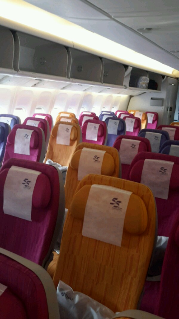 โบอิ้ง 777/200 ที่นั่งสีสันสดใส พร้อมโลโก้ 55 ปีการบินไทย นั่งสบายและสุขตลอดการเดินทาง