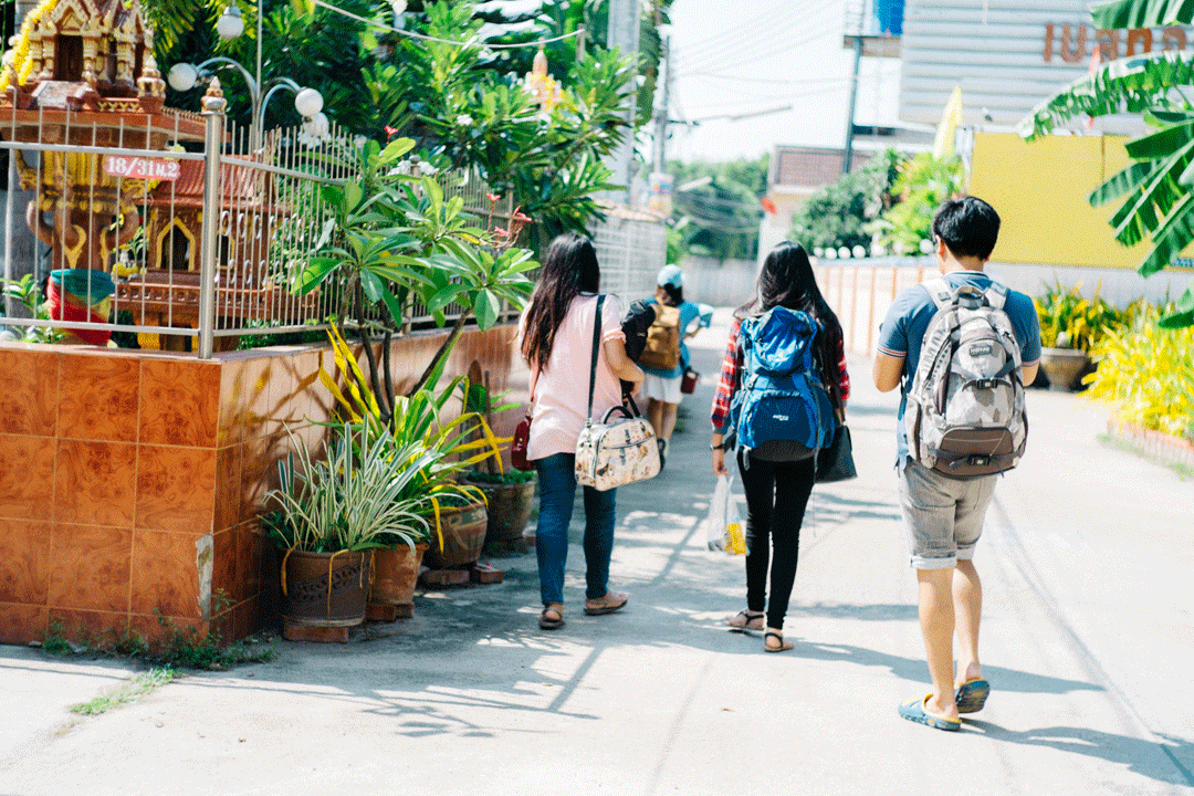แต่ฝนทำท่าจะตกแหะ เอาไงดี? พวกเราจึงตัดสินใจโบกรถแล้วขอติดรถหนีฝนแล้วกัน