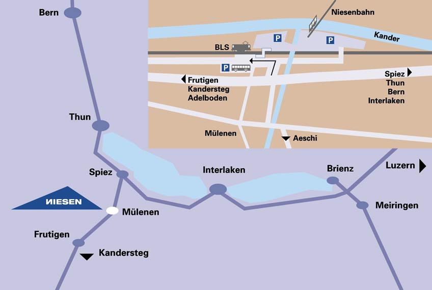 โดยจะต้องลงรถไฟที่สถานี Frutigen ซึ่งอยู่ในเส้นทางรถไฟเดียวกัน