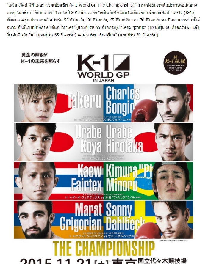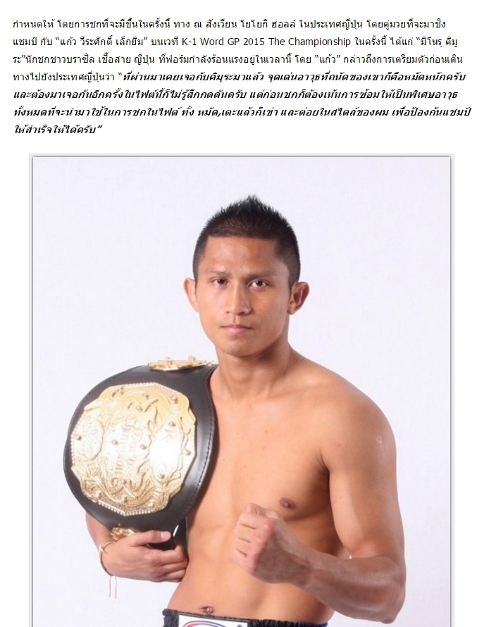 แฟนมวยชาวไทยเตรียมตัวเชียร์ "แก้ว วีระศักดิ์ เล็กยิม" ในศึก "K-1 World GP in JAPAN 2015 The Championship"