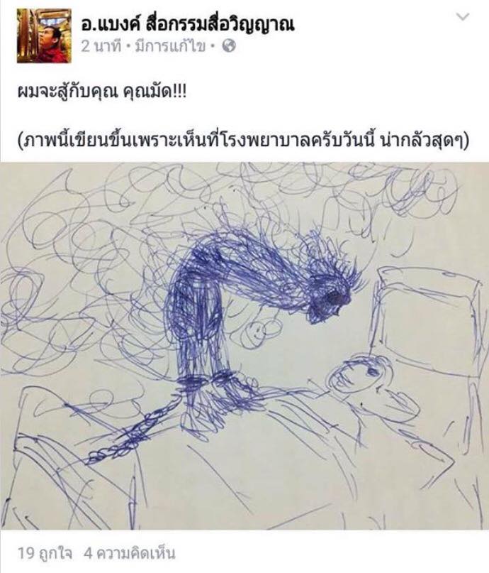 นี่ผมรออยู่นะ รอดูวันที่มันจะบอกว่ามันสู้กับผีอยู่ อยากรู้ว่ามันจะวาดรูปออกมายังไง จะบรรยายเป็นภาษาออกมายังไง