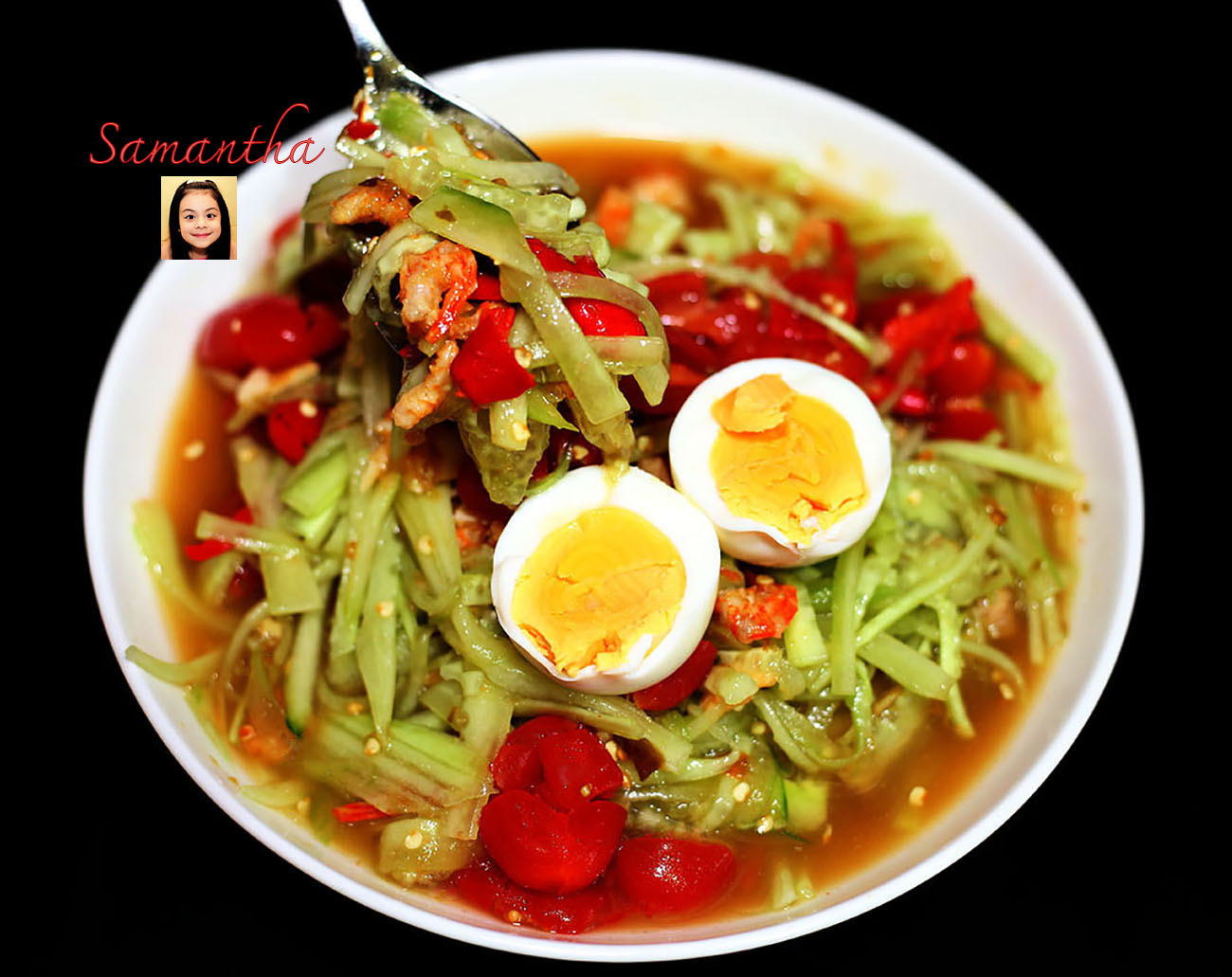 ส้มตำแตงใส่กุ้งและปูอัดรสชาติแซ่บๆ