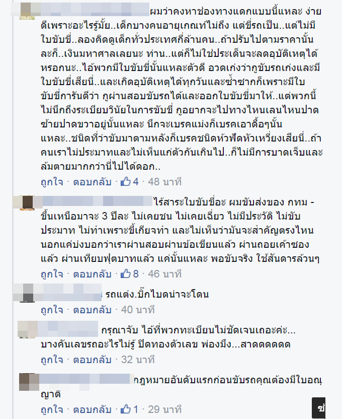 เป็นสองคอมเม้นท์ที่พีคมาก คนแรกบอกจะจับเด็กที่อายุไม่ถึง อีกคนบอกขับมานานแล้วใบขับขี่ไร้สาระ!!!!