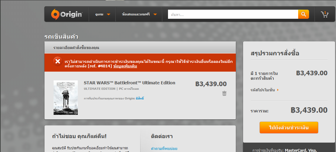 ซื้อเกมส์ผ่าน Origin ไม่ได้ครับ