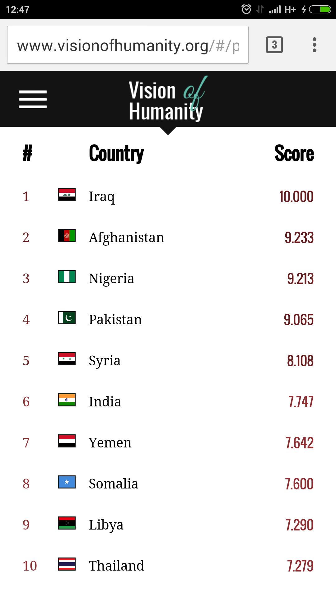 ดัชนีชี้วัดการก่อการร้าย ไทยอยู่ในอันดับ10 รองจากลิเบีย โซมาเลีย ที่คนไทยอาจไม่รู้สึกเพราะคำว่า ความไม่สงบ ที่รัฐบาลพูดกรอกหูอยู่ทุกวัน ไม่ใช่การก่อร้ายพึ่งเกิดที่ราชประสงแต่มันเกิดมานาน