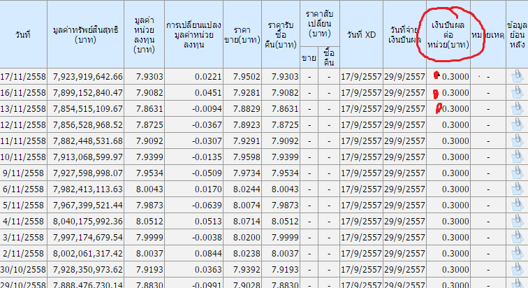 จากภาพนะคะ แปลว่ากองทุนตัวนี้มันปันผลทุกวันเลยรึเปล่า เพราะมันมี 0.3 ขึ้นทุกวัน แต่โดยส่วนตัวคิดว่าไม่น่าใช่ เพราะมันไม่น่าปันผลถี่ขนาดนั้นค่ะ เลยอยากรู้ว่าความถี่ในการปันผลของกองทุนในอดีตดูที่ไหนคะ