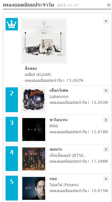 ต่อจากกระทู้ที่แล้ว http://pantip.com/topic/34459412 ครั้งนี้ขอสอบถามไปยังผู้ให้บริการเจ้าใหญ่ของไทย AIS และ DTAC ในการจัดชาร์ตเพลงเพื่อความโปร่งใส ปัจจุบันมีสองเจ้าที่เป็นหลักในไทย คือ KKBOX และ DE