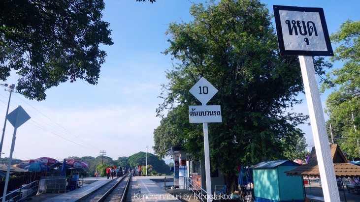 8 โมงนิดๆ เราก็ถึงสะพานข้ามแม่น้ำแควกันแล้วค่ะ