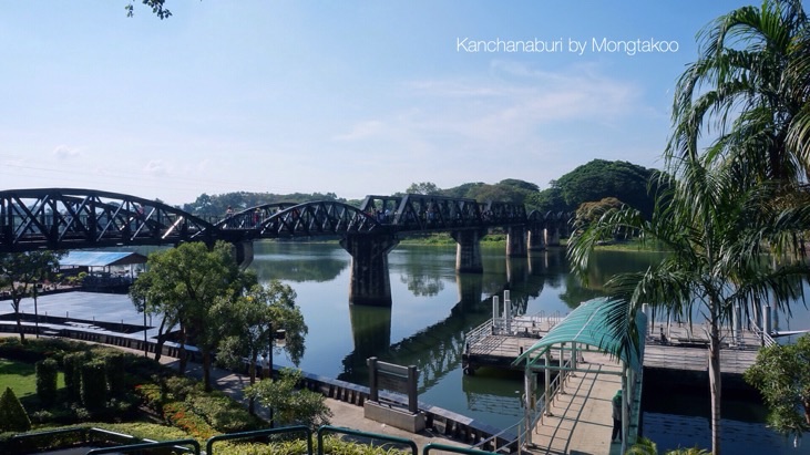 ปักหมุดไว้ที่แรก คือสะพานข้ามแม่น้ำแควค่ะ (พึ่งกูเกิลแมพมาตั้งแต่ที่บ้าน)