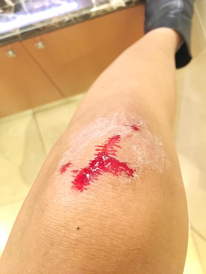 วินาทีนั้นคือแบบ แหกกกกกกกกกกกกก คือมันเป็นขนาดนี้ นึกว่าแค่หกล้มธรรมดาไม่ ถ้าไม่มีคนเข้ามาถามคนไม่รู้เลยว่ามีแผล