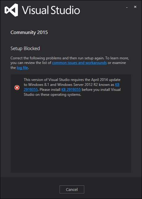 ทำไมผมดาวน์โหลดติดตั้ง SQL กับ visual studio ไม่ได้ช่วยทีครับ ผมแนบไฟล์รูปภาพหน้าจอให้ดูไม่ได้อธิบายเอาละกันนะครับ ตอนติดตั้ง SQL จะขึ้นเตือนตรง Feature Rules ว่า KB2919355 Status Failed ตอนติดตั