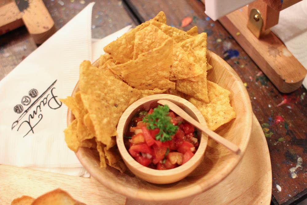 มาถึงอาหารกันบ้างงงง ที่นี่จะไม่มีอาหารหลักมากมาย ส่วนใหญ่จะเป็นของทานเล่นแต่ก็อยู่ท้อง เพราะที่นี่เป็นบาร์และตั้งใจให้ทุกคนมาวาดรูปกัน (วาดไป กินไป เพลินนั่นเอง)