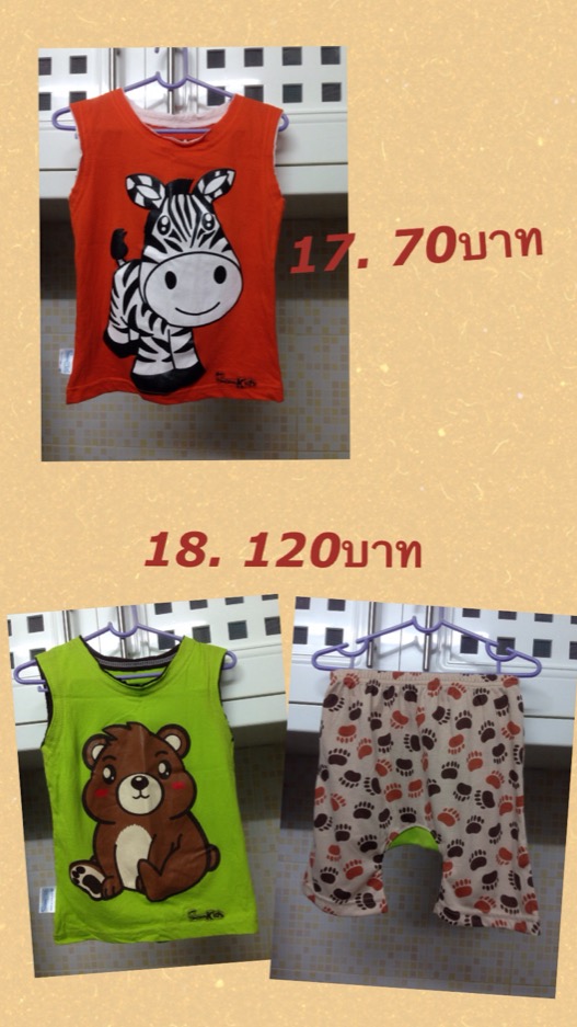 17. เสื้อกล้ามสีส้มลายม้าลาย ของใหม่ สำหรับเด็กขวบนึงขึ้นไป ไซด์ M ขาย 70 บาท