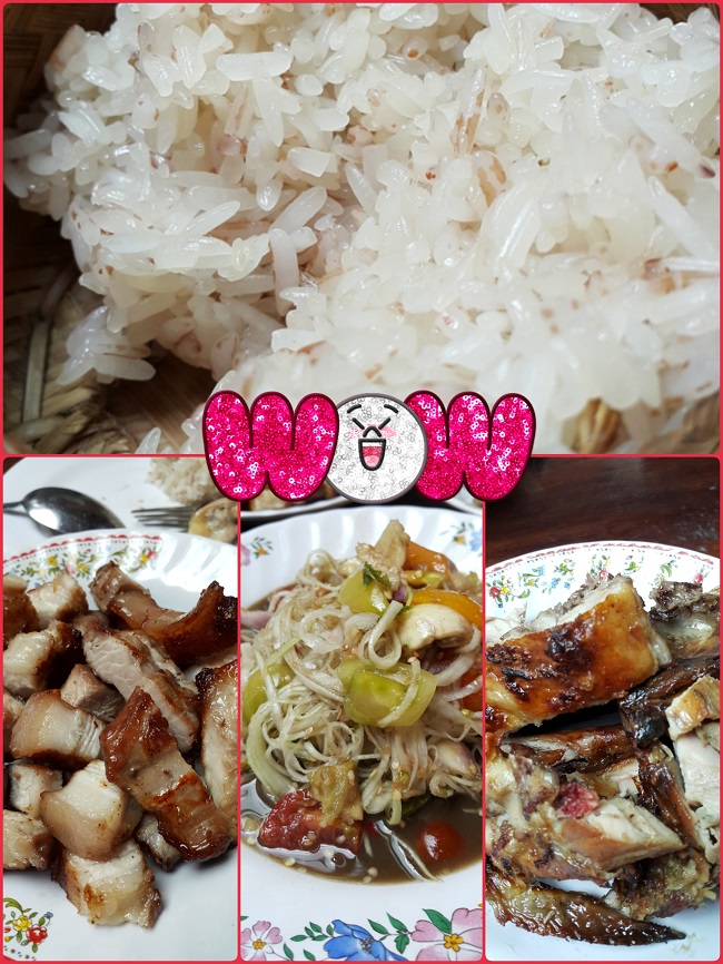 เที่ยวพอชุ่มฉ่ำใจก้อเริ่มหิวละ พี่ขาวกะเพื่อนรีบไปหาไรกินกันเลย ที่ร้านตรงทางเข้ามีร้านอาหารน่ากินหลายร้านเลยค่ะ ไป ไป กินข้าวกัน ระหว่างรออาหารพี่ขาวจุงก็รีบโทรไปหาคนขับรถเพื่อเตือนให้รับฟูมาด้วย เอ๊ะโทรไม่ได้บอกไม่ได้ลงทะเบียนไว้ งั้นโทรไปที่ร้านอาหารคนที่ร้านบอก ไม่ลืมค่ะเตรียมฟูไว้ล่ะ เดี๊ยวรถมาจะฝากฟูเข้าหลวงพระบางให้ เฮ้อออ พี่ขาวยิ้มออกละ อาหารมาละหน้าตาน่ากินที่สุด หม่ำเลยค่ะ