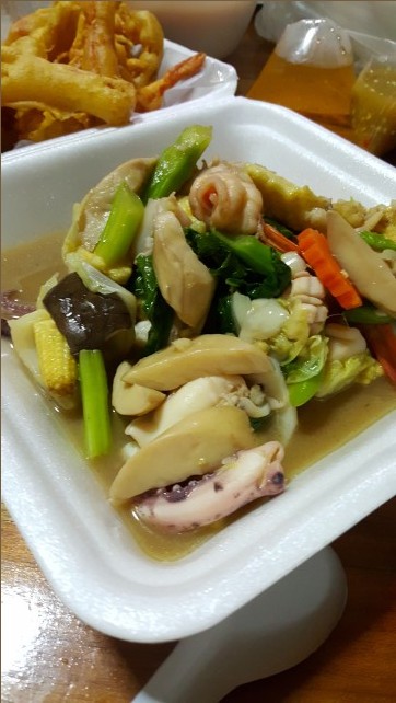 ไหนๆก็ซื้อแล้วถามสักหน่อยล่ะกันว่าตลาดนี้เป็นมายังไง จนรู้มาว่า นี่คือตลาดกลางคืนของเกาะช้าง ค่าคุณผู้ชม ตลาดแห่งนี้เปิดเวลา 17.00-22.00 น. ของทุกๆวันเลย (มาเกาะช้างห้ามพลาดนะ) ที่นี่ไม่ได้มีแค่ทะเล ภูเขา น้ำตก นะยูว ตลาดกลางคืนก็มีนะจ้ะ ถึงที่พักเราก็จัดการทานอาหารที่ซื้อมาจนหมดเกลี้ยง หนังท้องตึงหนังตาหย่อนเป็นธรรมดา มื้อนี้หมดไป(480 บาทเอง 6 คน กับข้าว7 อย่าง)