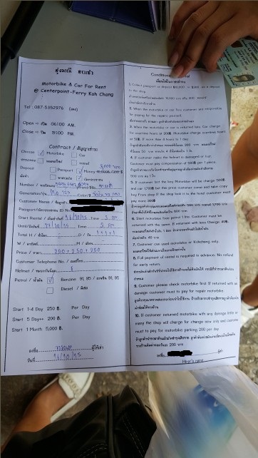ซึ่งค่าเช่ามอเตอร์ไซด์คิดเป็นค่าบริการต่อวัน วันละ 250 บาท โดยมีค่ามัดจำมอเตอร์ไซค์คันละ 1,000 บาท มีน้ำมันให้ 1 ลิตร ขับได้ประมาณ 5 กิโลเมตร เราตัดสินใจว่าเช่า3คัน ไปคันละ2คน