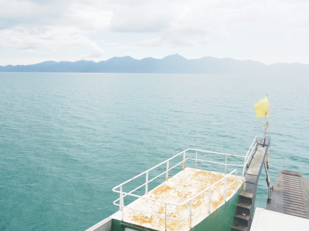 แต่ฝนก็ตกได้ไม่นาน ทำให้สามารถดื่มด่ำบรรยาศต่อได้และแล้วเรือก็เริ่มออกเดินทาง เราเดินทางถึงเกาะช้างเวลาประมาณ 14.45 น. ใช้เวลา45 นาทีในการเดินทางข้ามเกาะ