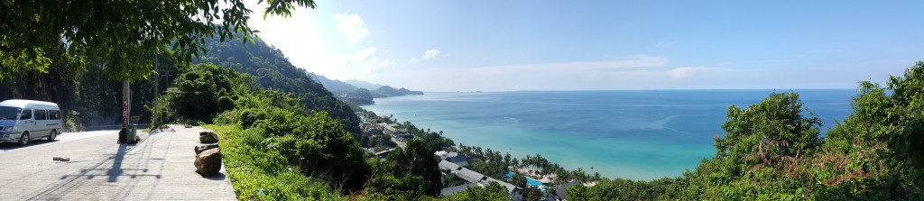 ขับมอเตอร์ไซค์ไปทางซ้ายเรื่อยๆ จากที่พัก วิวที่มองจากบนเขาไปที่ทะเลสวยงามมาก มื้อเย็นเราตกลงกันว่าจะซื้อกลับไปกินกันที่พักเลยตระเวนหาร้านอาหารที่ดูง่ายๆไม่เป็นภัตคาร ซึ่งตลอดเส้นทางริมชายหาดส่วนมากเป็นร้านอาหารที่ดูหรูหราไม่แน่ใจว่าจะแพ็กให้เราได้รึเปล่าและราคาจะไหวกับเงินในกระเป๋าตังเราไหม