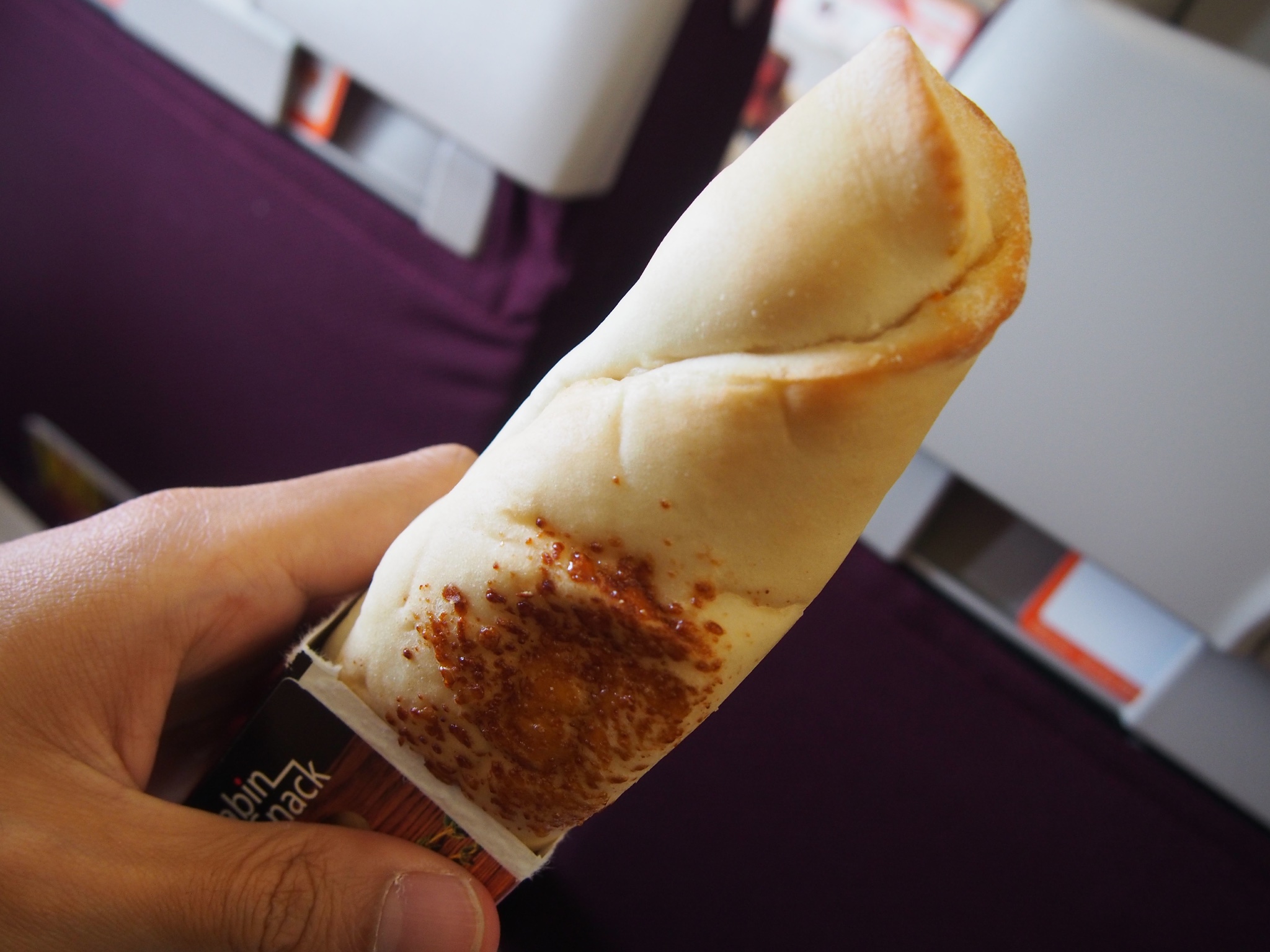 ตื่นกันตั้งแต่ตี5แหกขี้ตา ควบม้าไปยังดอนเมือง แบกร่างกายกันหิวโซไป เมื่อเครื่องขึ้นไม่นานก้อมีของว่างมาเสริ์ฟ เป็นคล้ายๆพิซซ่าโรลอบร้อนๆ แป้งเหนียวนุ่มจริงๆ กัดไปเจอไส้(มีซอสมะเขือเทศด้วย)ที่อัดแน่น อร่อยจนคำสุดท้าย (พี่นี่ถึงขั้นดูดนิ้ว) ตามด้วยน้ำส้มเย็นๆชื่นใจเพิ่มพลังก่อนถึงเจียงใหม่เจ้าาา...