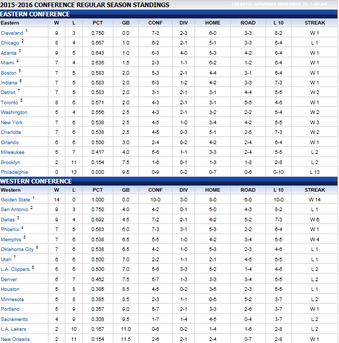 ดู Standing ปีนี้แล้วเพิ่งจะสังเกตุเห็นว่าตอนนี้ฝั่งตะวันออกนี่ทีมที่สถิติ .500 ขึ้นไปนี่ลงไปถึงอันดับ 12 เลย