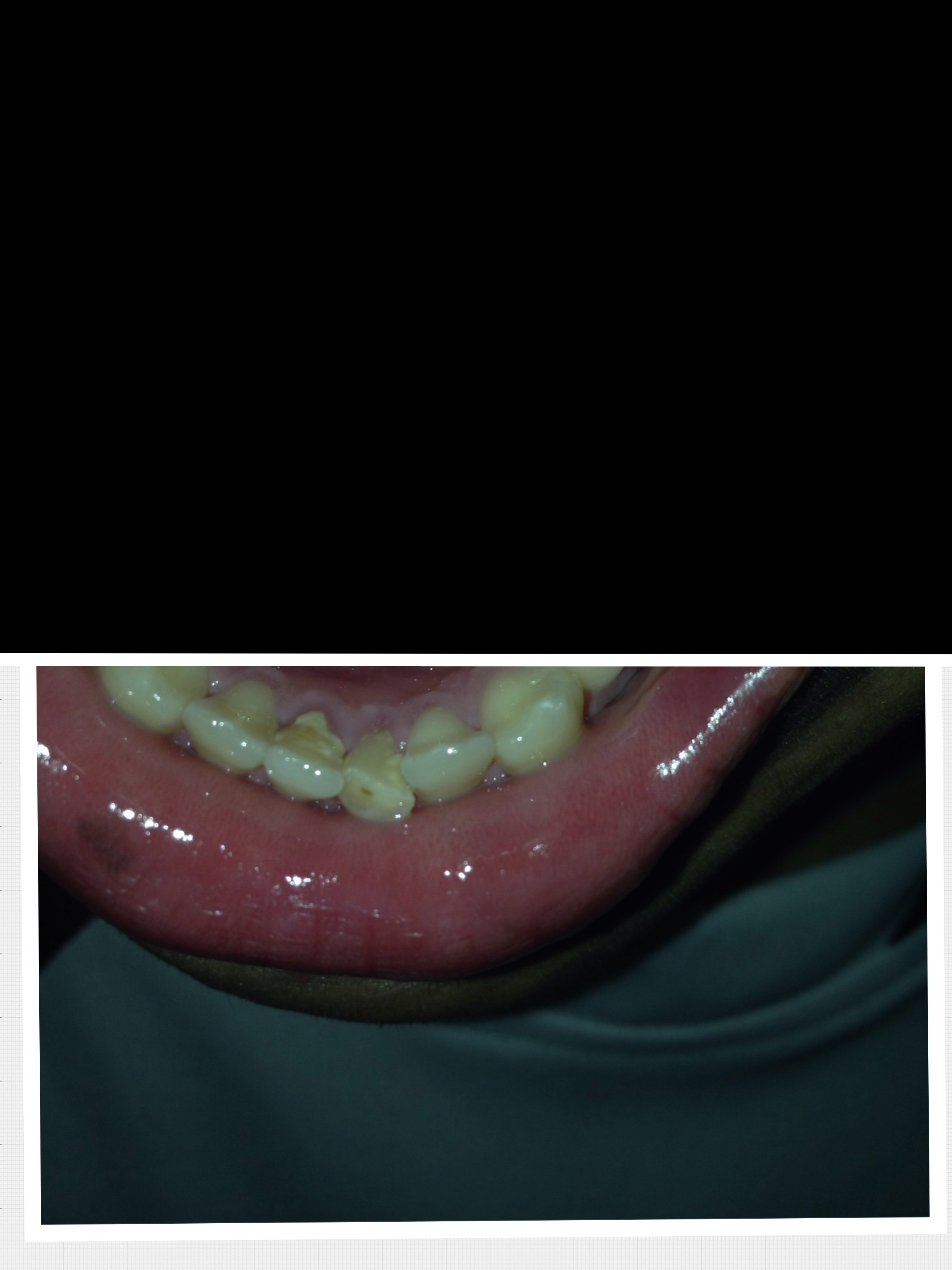 ด้านซ้ายจากมุมคนดูสังเกตุบริเวณรากฟันแล้วมันไม่เหมือนกับซี่อื่นๆครับ ตอนนี้รำคาญมากๆๆเลยพอจะมีใครรู้มั้ยครับ