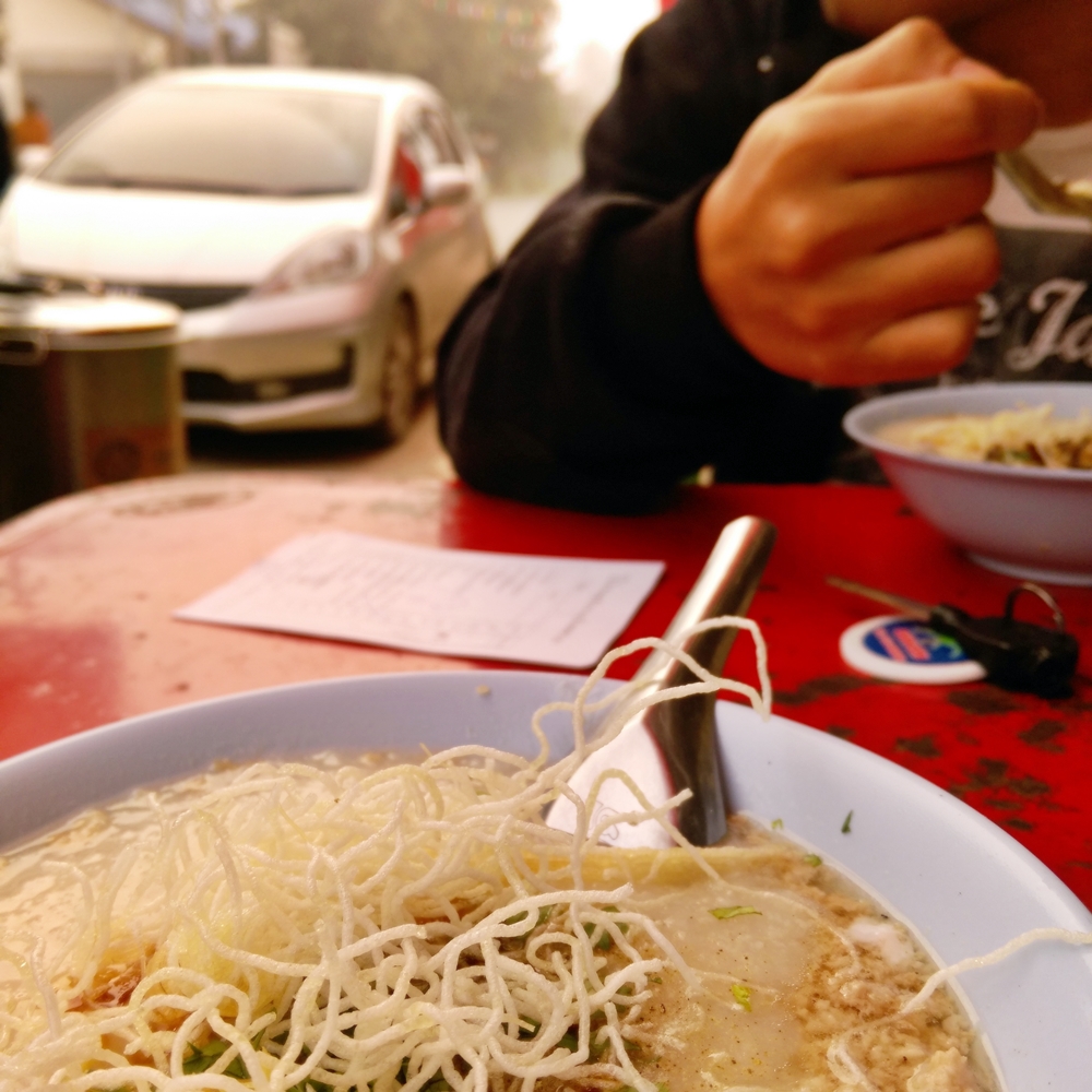 เนื่องจากตื่นเช้า จึงทำให้หิวข้าวเร็ว เลยลองขับรถหาร้านโจ็กแถวในเมือง ไปเจอร้านหนึ่งคนเยอะดีเรยเข้าไปลองชิม เป็นโจ็กสมุนไพร มีป้ายเขียนว่า 'ร้านนี้ไม่ใช้น้ำตาลแต่ใช้หญ้าหวานแทน' ในตอนแรกนึกว่าจะจืดๆ แต่พอชิมเท่านั้นแหละ อยากซื้อไปฝากคนที่บ้านเลย อร่อยมักมากก
