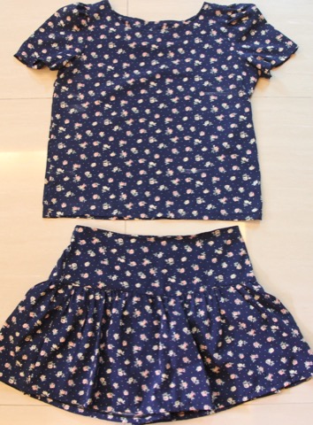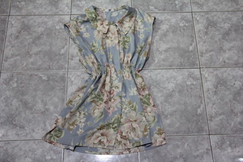 5.ชุดเสื้อกระโปรง ลายดอกไม้ อกไม่เกิน 35 กระโปรงด้านหลังเป็นยางยืด ราคา 100 บาท