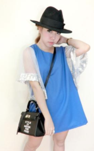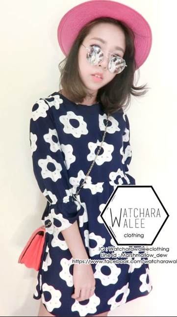 9.เดรสสีนำ้เงินลายไข่ดาวปลายแขนระบาย อกถึง 37 ยาว 30 ราคา 70 บาท