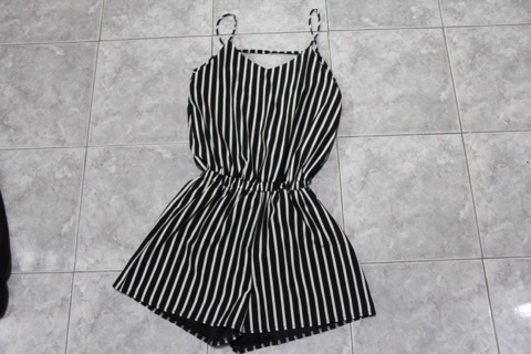 15.เสื้อสายเดี่ยวสีขาวดำ เอวจั้ม อกได้ถึง38 ราคา 70 บาท ของใหม่