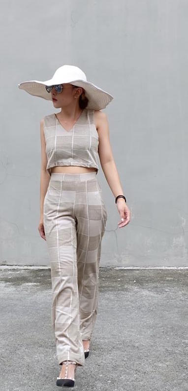 18.ผ้า cotton ยืดค่ะ รุ่นนี้ผ้าสวยมากกกก รอบนี้มาสีครีมโอวัลติน มันมีดีเทลในตัว คือสวยเก๋ ไม่ซ้ำใคร เซตนี้เป็นครอปคอวี มีซับด้านใน กางเกงเป็นทรงขาม้าเล็ก แอบคุณหนู สวย ชิค กางเกงด้านหลังสม็อคนะคะ ใส่แล้วหุ่นดี้ดี