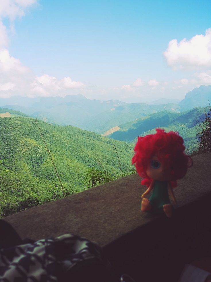 ขับมาเรื่อยๆเลาะตามเขาไป ส่วนใหญ่ทางไปวังเวียงจะเป็นทางขึ้นเขาที่ค่อนข้างชัน และโค้งค่อนข้างเยอะค่ะ ฟูนับไม่ถูกเบยว่ามีกี่โค้ง (จิงๆนับเลขยังไม่เก่งต่างหากละ 5555) พอขับไปสักประมาณเที่ยง รถก็แวะจุดพักรถให้ทานข้าวและเข้าห้องน้ำกันค่ะ พี่ขาวกะเพื่อนยังไม่ทานข้าวเช้าเลยดิ่งไปสั่งอาหารก่อน สั่งปุ๊ปรีบเดินไปหามุมสวยๆนั่ง เลือกได้มุมในสุดมองเห็นวิวด้วยหล่ะ สวยจังเลย