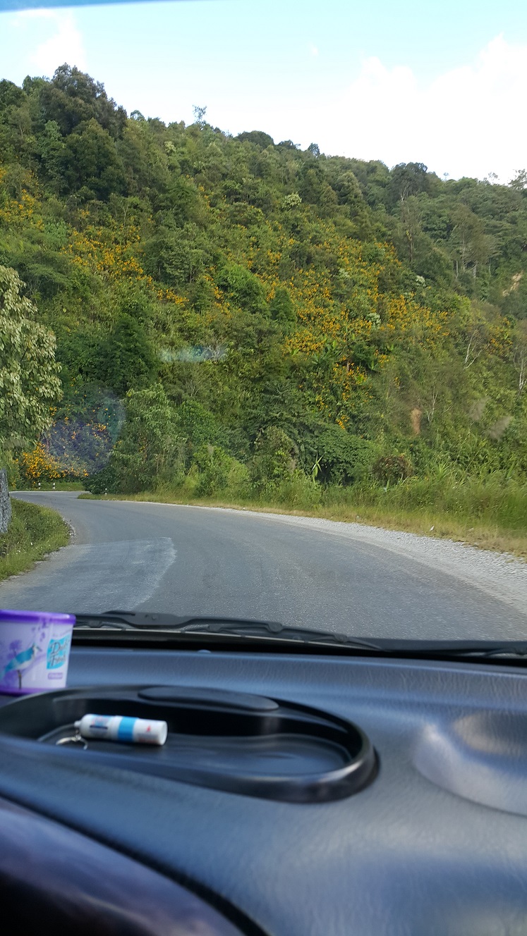 ดอกบัวตองขึ้นเต็มไปหมดเลยค่ะ เกือบตลอดทาง และแถมขึ้นตามเขาอีกค่ะ มองไปไกลเห็นสีเหลืองเต็มไปหมด ธรรมชาติช่างสร้างสรรจิงๆเลยเนอะ