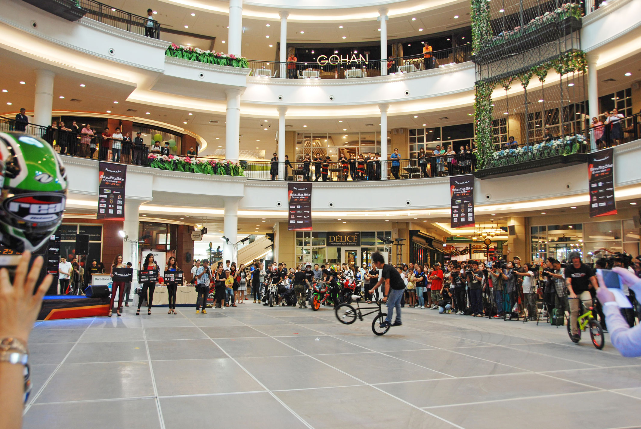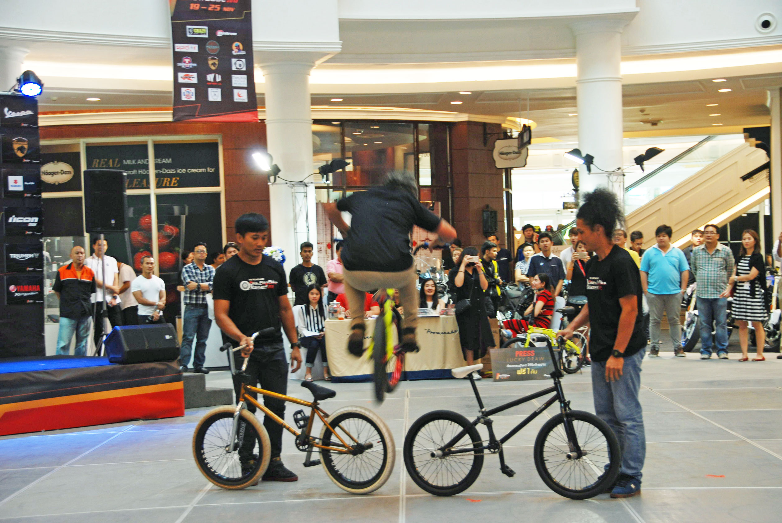 มาชมภาพบรรยากาศเปิดงานอีเว้นท์กันบ้างครับ เขามีโชว์การแสดงผาดโผนของทั้งจักรยานและบิ๊กไบค์ครับ เล่นโชว์กันกลางห้างเลย พื้นที่กว้างใช้ได้เลยครับ