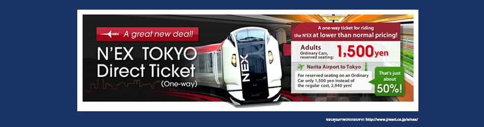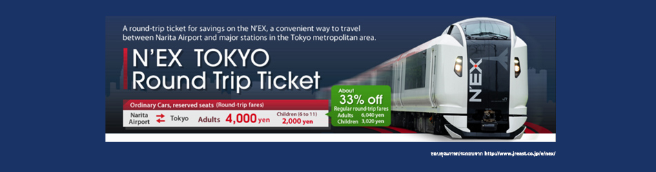 ส่วนอันนี้โปรใหม่ล่าสุด ไป-กลับ นาริตะ โตเกียว คนละ 4,000 เยน สามารถดูข้อมูลเพิ่มเต็มได้ที่ http://www.jreast.co.jp/e/nex/tickets.html