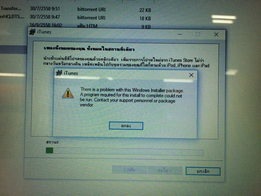 พอดี iTunes อันเก่าผมมันเสียครับ ผมเลยลบแล้วลงใหม่ พอลงใหม่มันขึ้น error มาครับว่า "There is a problem with this Window Installer Packgage.A problem required for this install to complete could n