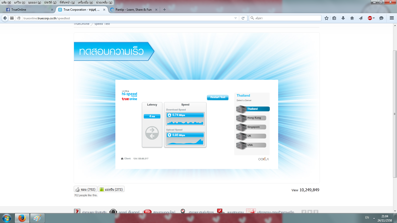 มาดูความเร็ว 30 เมก ที่ทรูเค้าโฆษณาไว้กัน