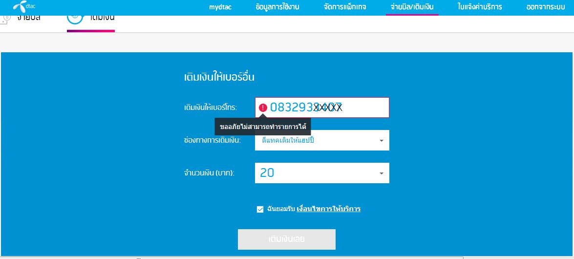 ทำไมตอนนี้ DTAC เติมเงินให้ HAPPY เติมไม่ได้แล้วครับ