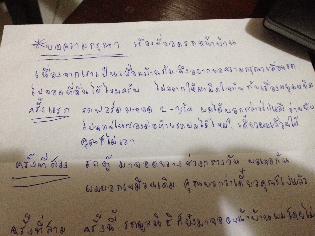 และหากมีความจำเป็น ไม่ว่าจะญาติมาหรืออะไรก็แล้วแต่ ก็จะขอจอดรถหน้าบ้านกันถ้อยทีถ้อยอาศัยมาโดยตลอด