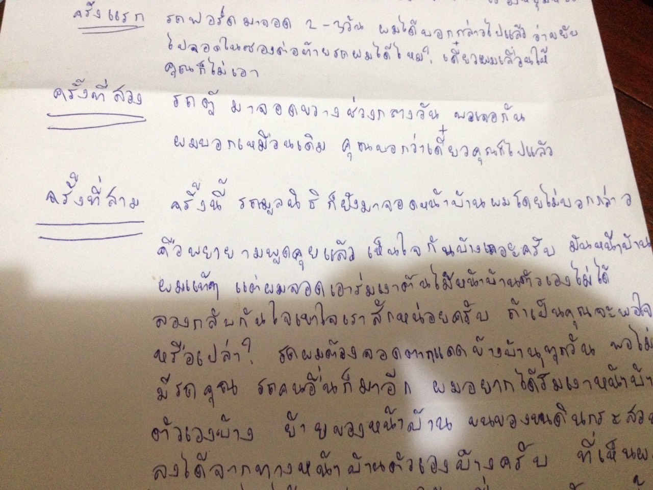 ผมจะทำงานทำต้นไม้ก็ค่อนข้างลำบาก พอเจอตัวเลยบอกว่า "ถ้าจะจอดไว้ทั้งวันช่วยเลื่อนไปจอดข้างบ้านผมได้มั้ย บางครั้งพี่บ้านติดกันเค้าไม่ได้จอดเดี๋ยวขยับรถให้" เค้าบอกแต่ว่าจะออกแล้ว