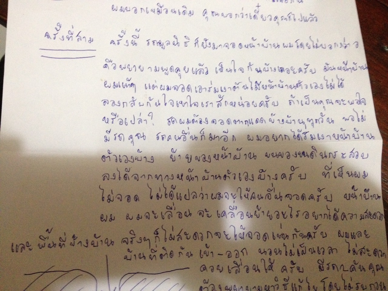 รถบ้านที่ถัดไป 2-3 หลัง มาจอดข้างบ้านแทน ผมและพี่ข้างบ้านจึงเลื่อนมาจอดหน้าบ้านตัวเองไม่ได้มีปัญหาอะไร