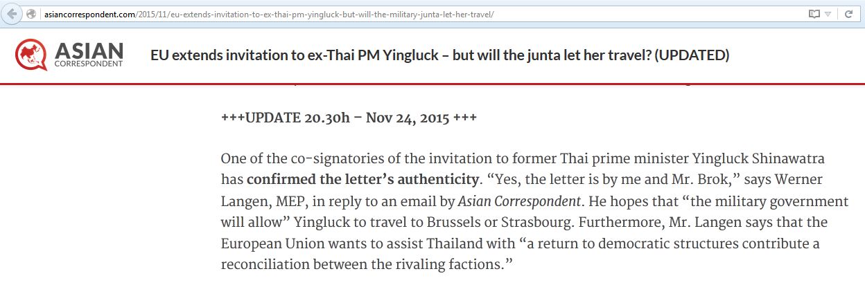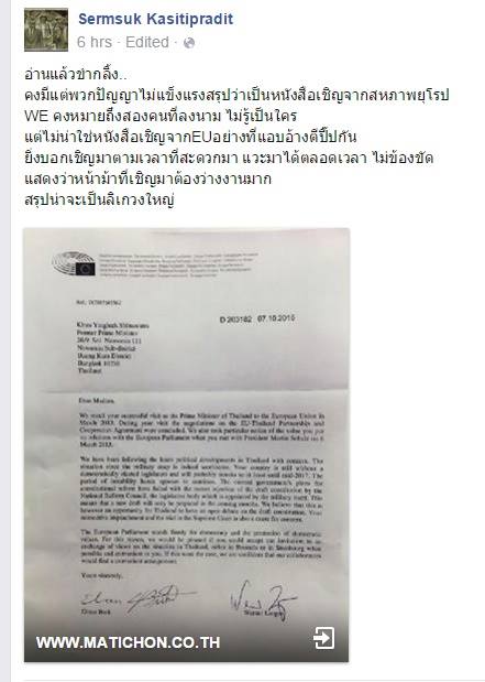 เมื่อวาน ผองสลิ่มทั้งในเฟส ในไลน์ ในห้องราช ทุกบอร์ดสลิ่ม ฮือฮา ตื่นเต้น เฮโล วิ่งกรูกันมะรุ้มมะตุ้ม จับผิดจดหมายน้อยจากรัฐสภายุโรปเชิญยิ่งลักษณ์ไปเยี่ยมเยียน ตั้งแต่คำว่า “KHUN”, วันที่ออกจดหมายเชิญ,ไม่ระบุวันเวลาที่จะให้ไป,ตลอดจนคนลงนามเชิญ 2 คน เยาะเย้ยถากถางว่าเป็นของปลอม ..สุดท้าย “เงิบแดร๊ก” !