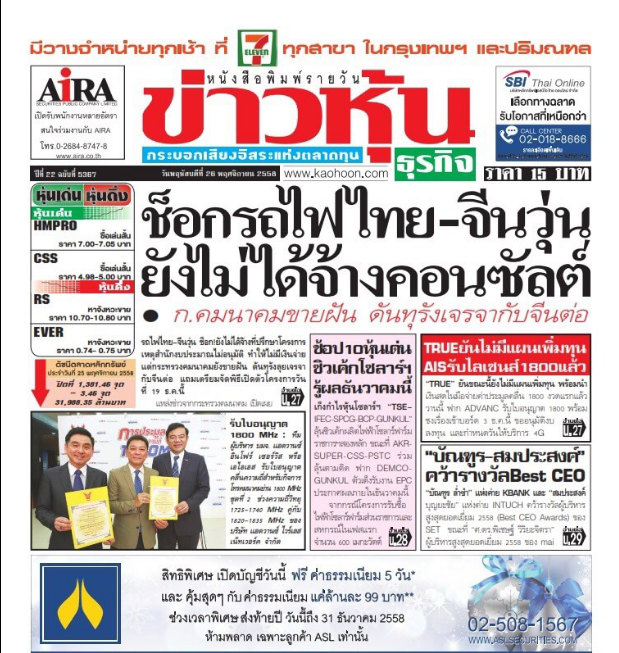 สรุปข่าว หนังสือพิมพ์ข่าวหุ้น ฉบับวันที่ 26 พ.ย. 2558