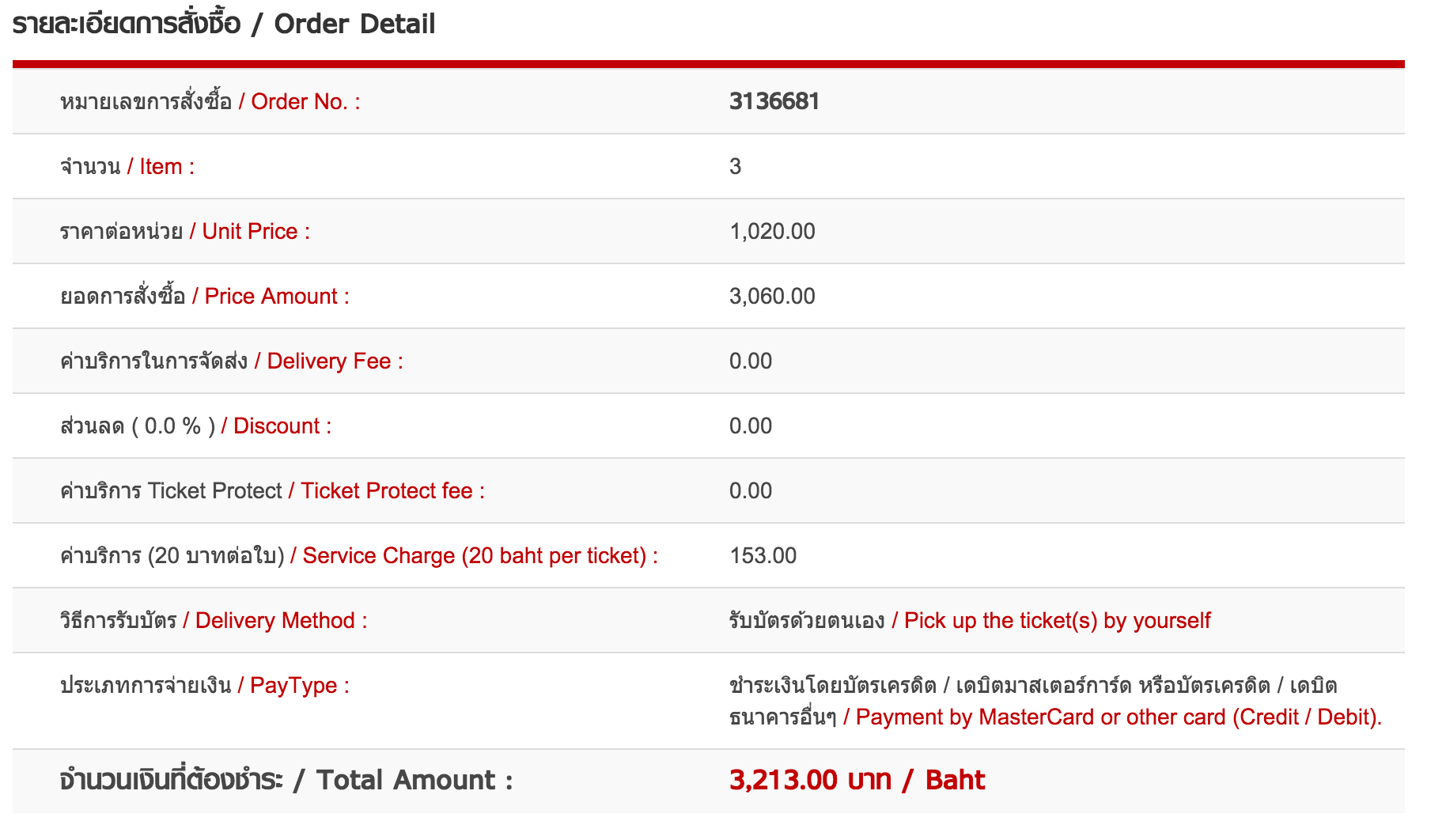 พอดีเมื่อวันเสาร์เรามีซื้อตั๋วคอนเสิร์ตผ่าน Thaiticket Major ราคาหน้าบัตรที่เราซื้อ คือ 4,500 บาท แต่คิดให้เราเป็น 4,520 บาท (อันนี้เราไม่รู้ว่า 20 บาท นี่เกี่ยวกับว่ารับบัตรแข็งตอนวันคอนเสิร์ตรึเปล่